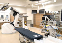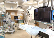 麻酔部所属の医師は、中央棟の3Fと4Fにある計18室、新外来棟にある4室の手術室、術後回復室、術前診察室をカバーしています。小児・成人の心臓手術、脳血管カテーテル治療、血管ステント手術、胸腔鏡下肺手術、腹腔鏡手術、頭頸部外科手術などが比較的多いのが特徴です。ここでのトレーニングで、麻酔科専門医に必要な麻酔手技は網羅できます。
